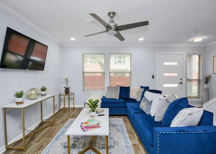 Villa The Midtown House de 138 m² est situé à moins de 25 minutes à pied du Parc Discovery et à moins de 25 minutes de marche du Stade de baseball Minute Maid Park. Les chambres de villa offrent une cuisine complète, et sont entièrement équipées d'un canapé, une cafetière/théière et un pupitre d'écriture.