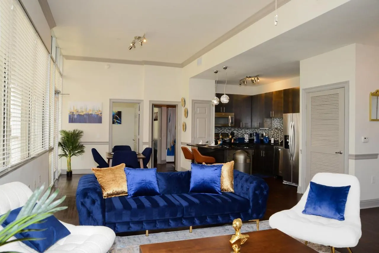 The 121 m² Amari Luxury High-Rise With Pool, Gym, & Theater Apartment Houston is located at a 4.5 km distance from NRG Stadium and offers spa facilities such as an outdoor swimming pool. Water Wall can be reached in a 15-minute drive from this 2-bedroom apartment.